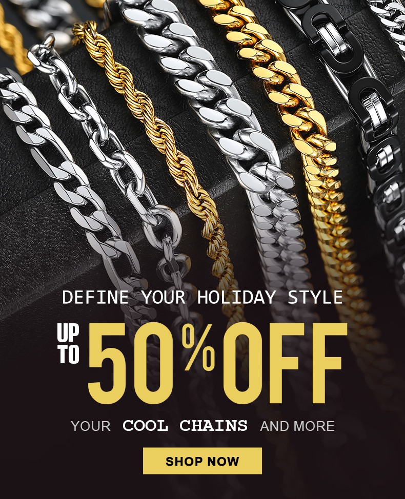 We offer a variety of styles, from classic Cuban, Figaro and Rope chains to more trendy designs. Our pieces are durable, hypoallergenic and affordable, perfect for daily wear or as gifts.