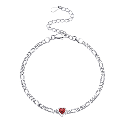 Sterling Silver Heart Birthstone Bracelet For Women